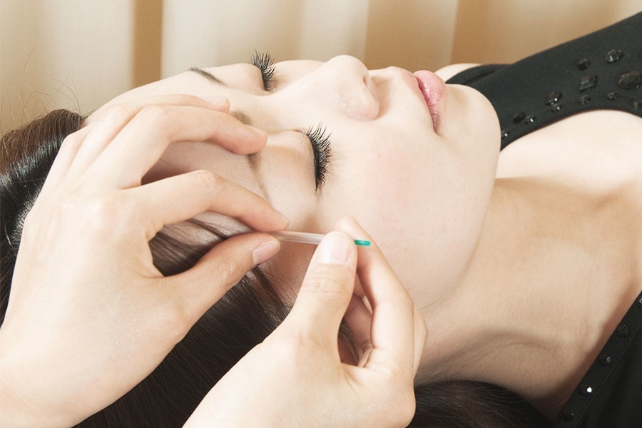 お顔のツボには細い針を使用し、痛みは最小限の施術を心掛けております。
